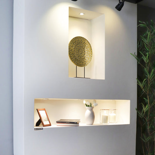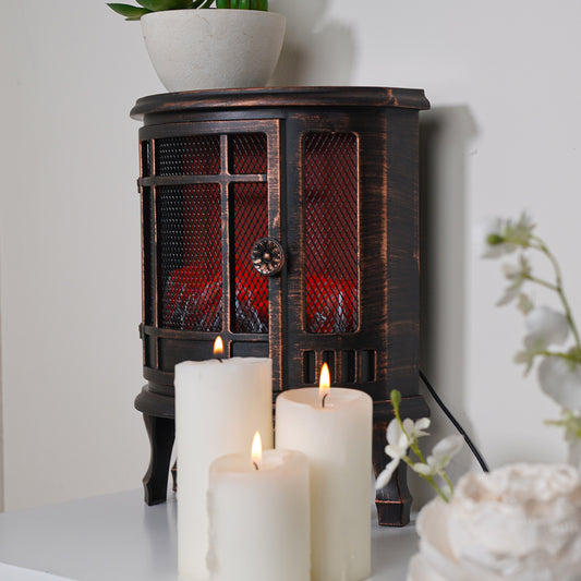 أضاءه ديكور على شكل مدفأة حطب مدور