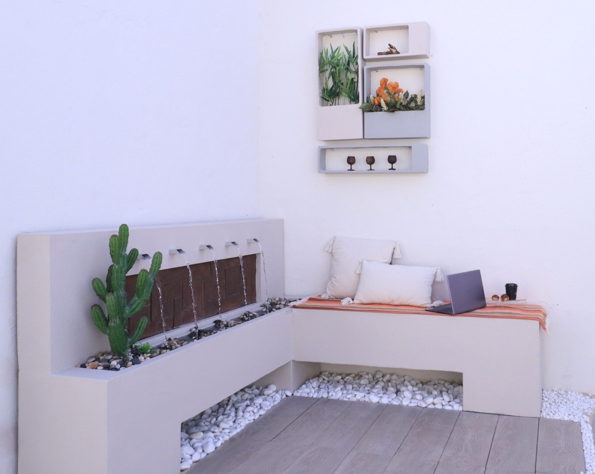 شلال بتصميم مميز مدمج مع (  كرسي أو حوض قابل للزراعة )