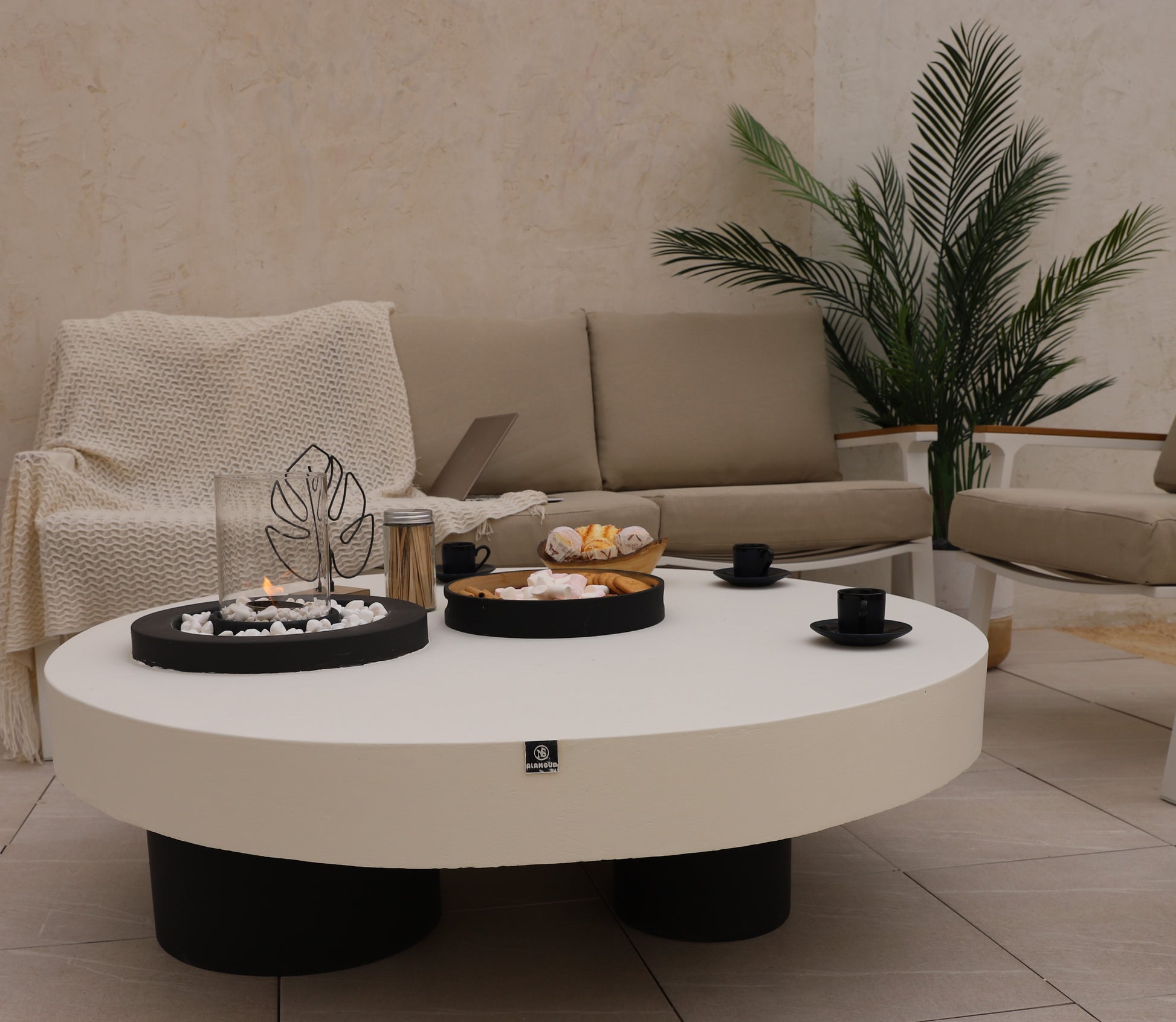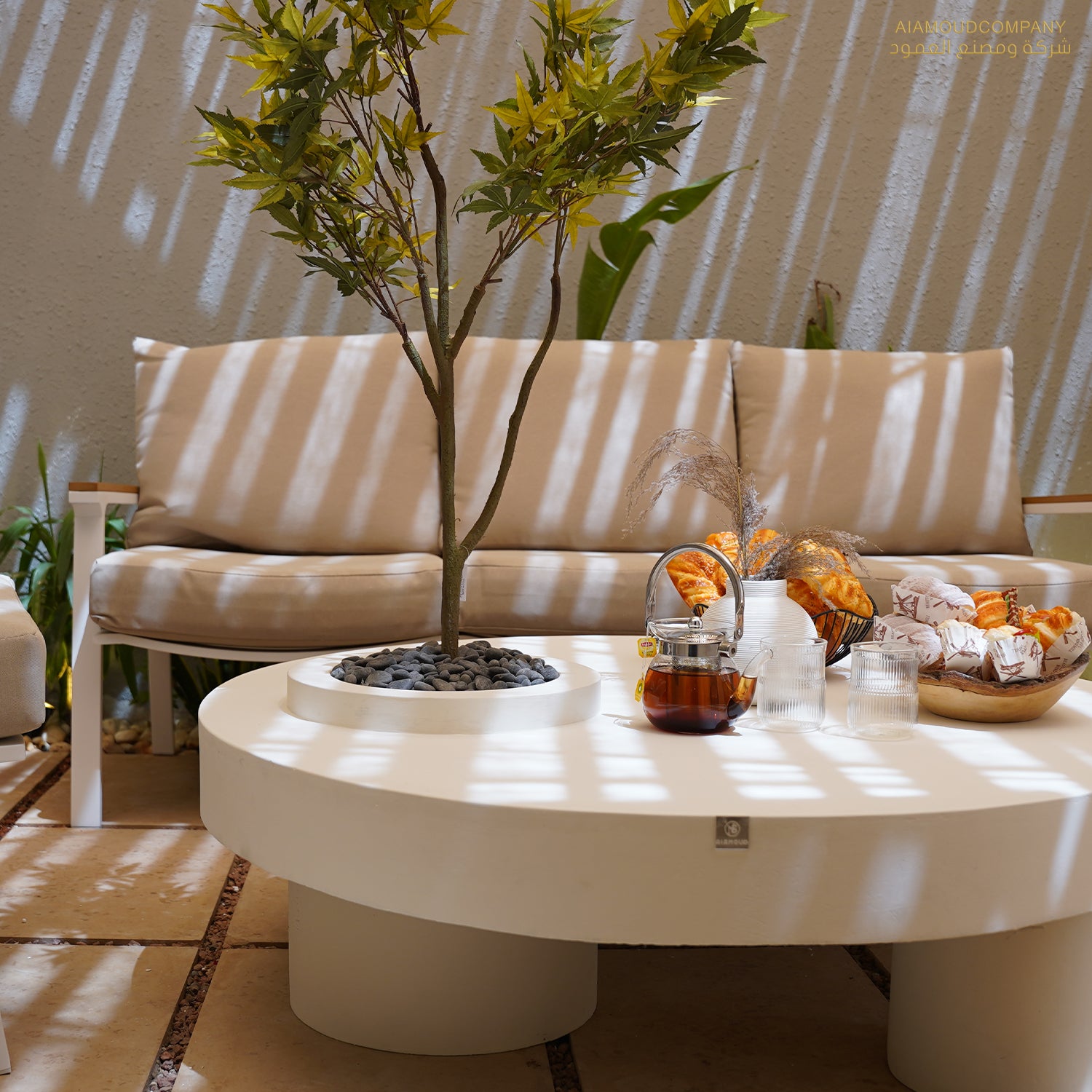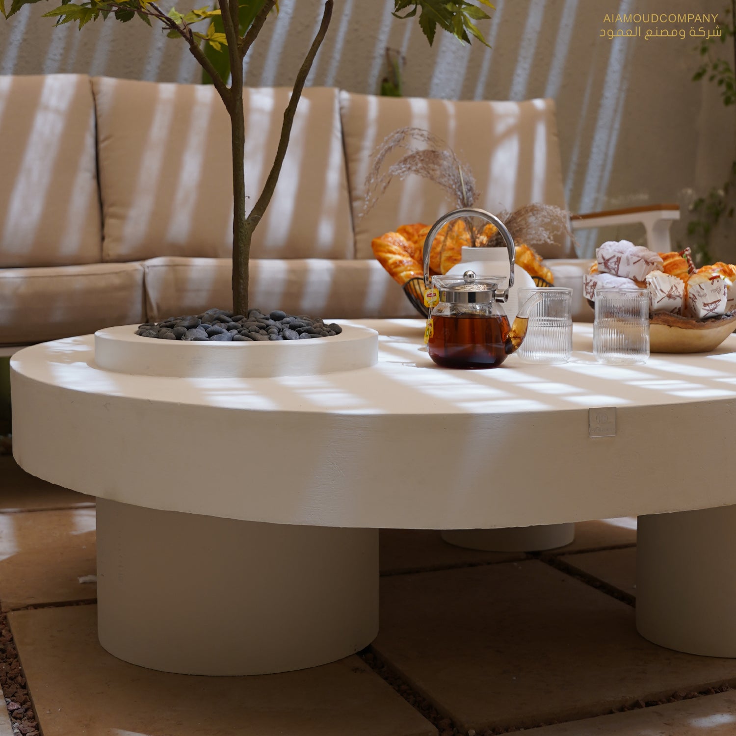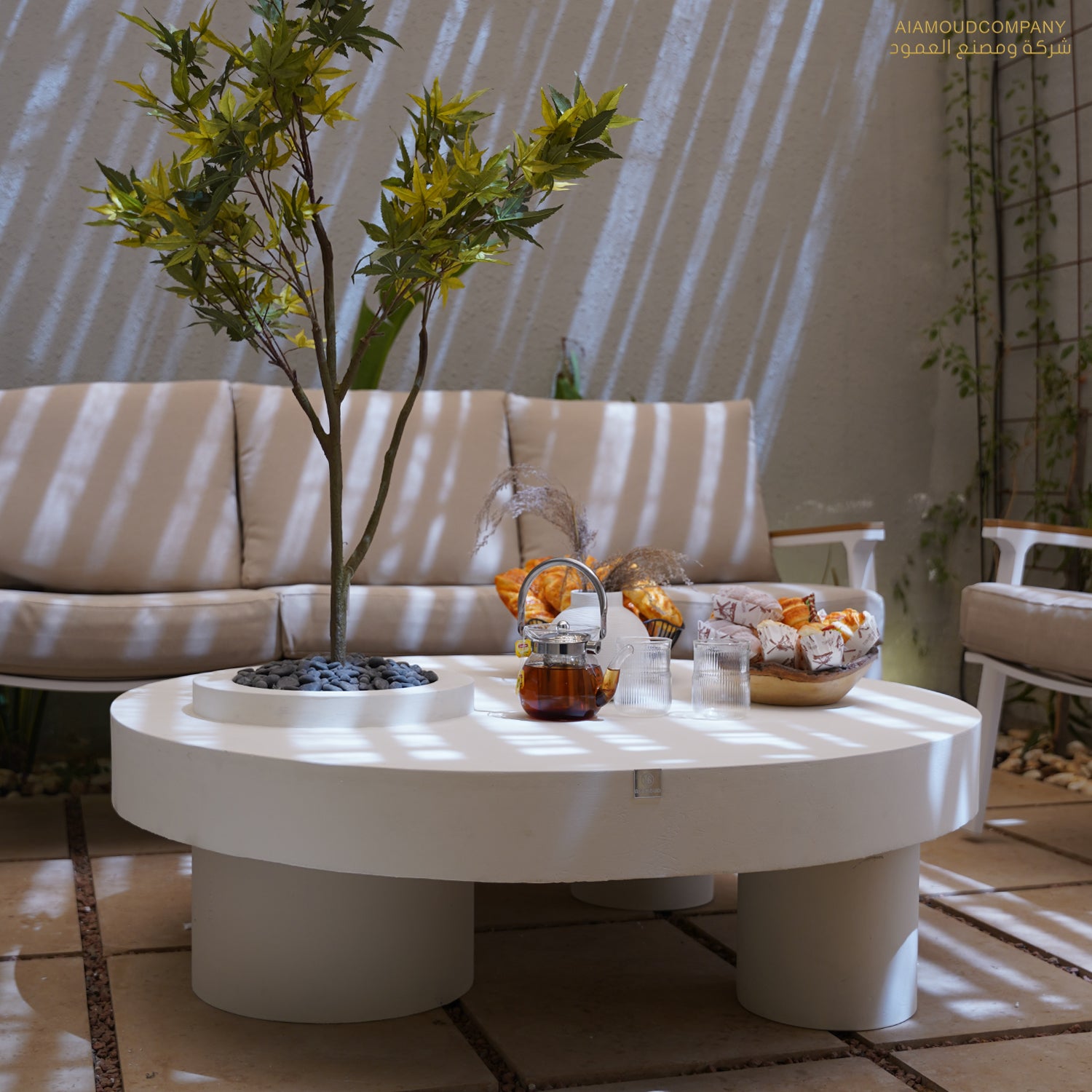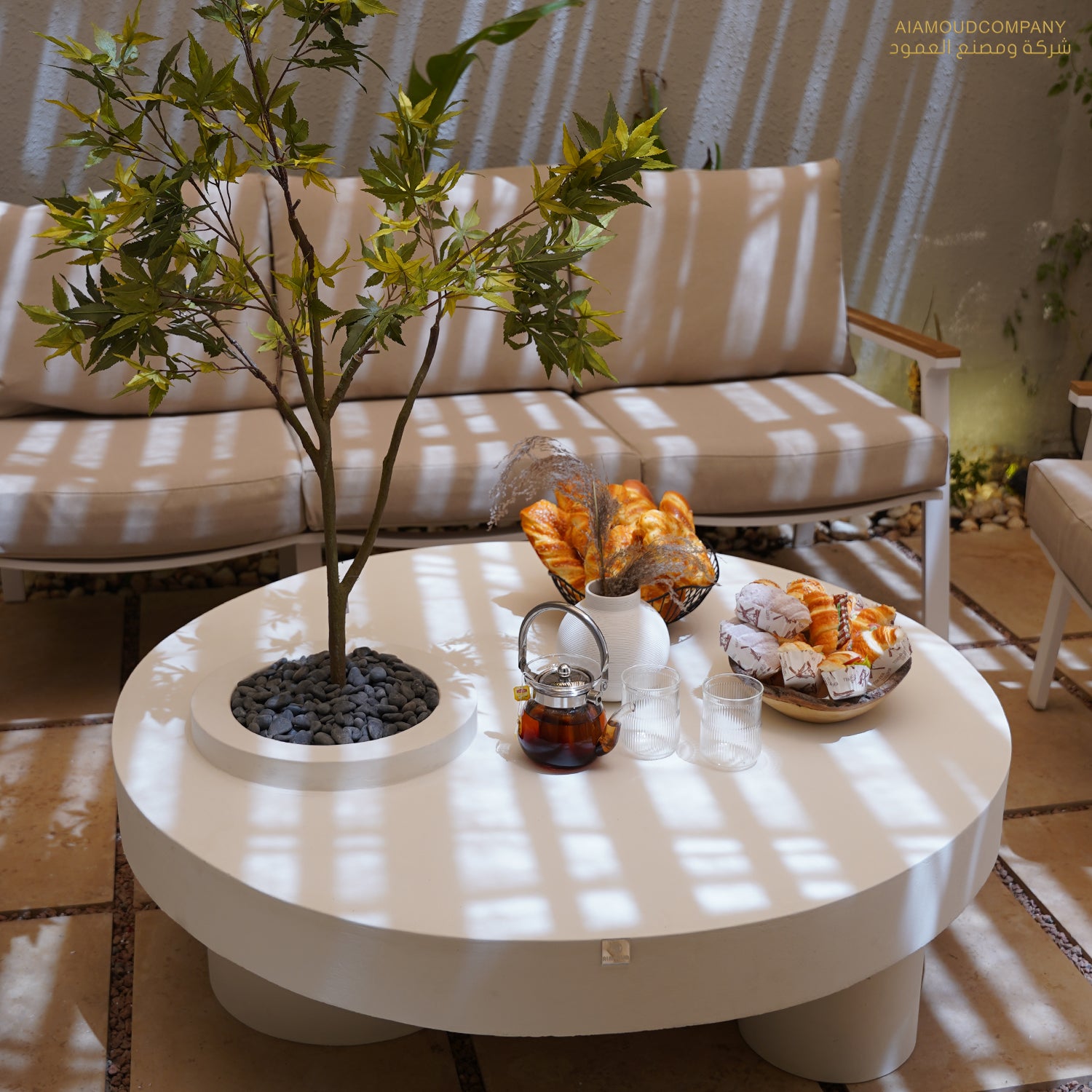تعتبر الطاولة عنصر رئيسي في كل بيت و أصبحت مكملاً للمكان الذي توضع فيه لذلك نحن في شركة العمود قمنا بتصميم هذه الطاولة التي تتميز بفتحه جانبيه يمكنك أن تزرع أي نبات تفضله صنعت بشكل دائري من مادة الكونكريت الياباني المخفف حيث يتميز بتحمل عوامل الطقس بالإضافة الى انه يتحمل رطوبة النباتات ويمكن تزيين التربة بالأحجار الطبيعية لحفظ رطوبة النبتة