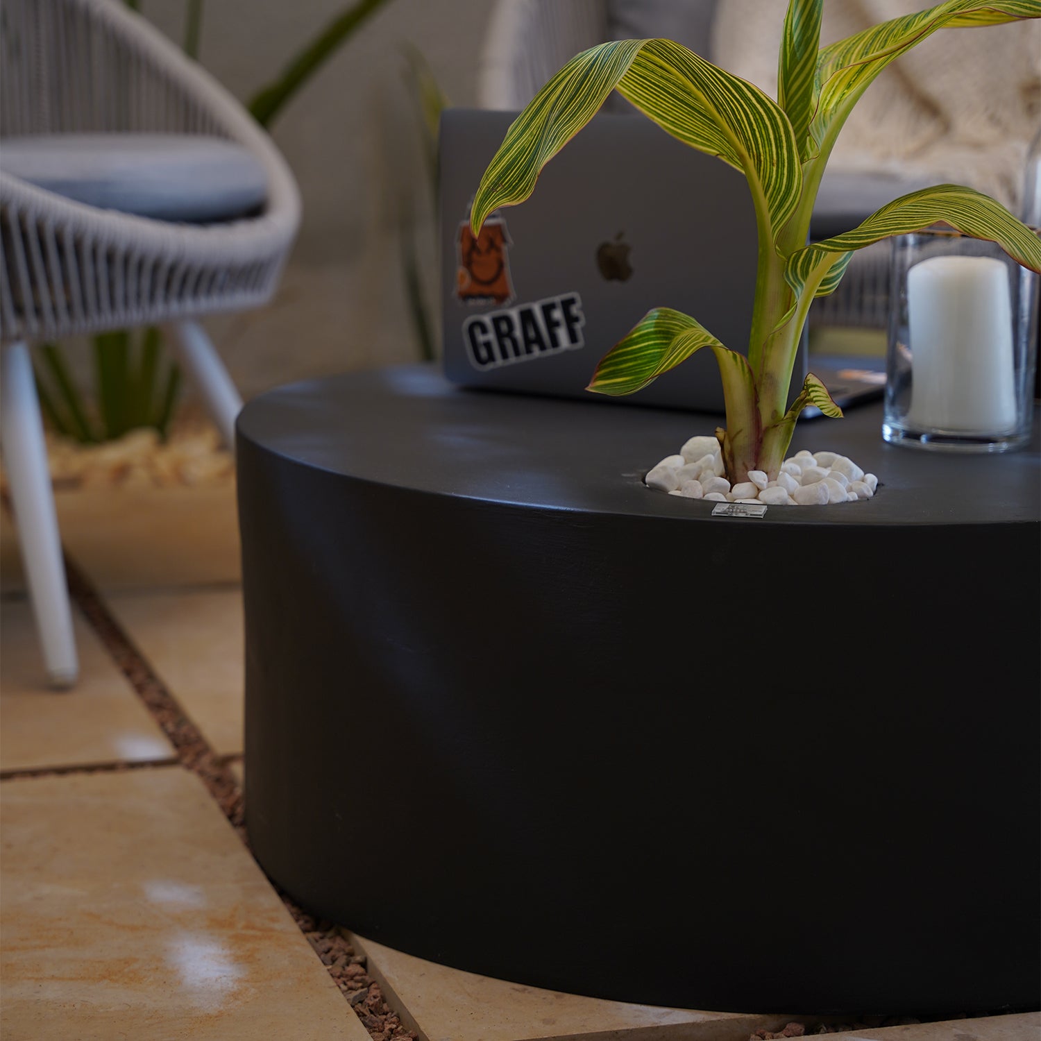 تعتبر الطاولة عنصر رئيسي في كل بيت و أصبحت مكملاً للمكان الذي توضع فيه لذلك نحن في شركة العمود قمنا بتصميم هذه الطاولة التي تتميز بفتحه جانبيه يمكنك أن تزرع أي نبات تفضله صنعت بشكل دائري من مادة الكونكريت الياباني المخفف حيث يتميز بتحمل عوامل الطقس بالإضافة الى انه يتحمل رطوبة النباتات ويمكن تزيين التربة بالأحجار الطبيعية لحفظ رطوبة النبتة