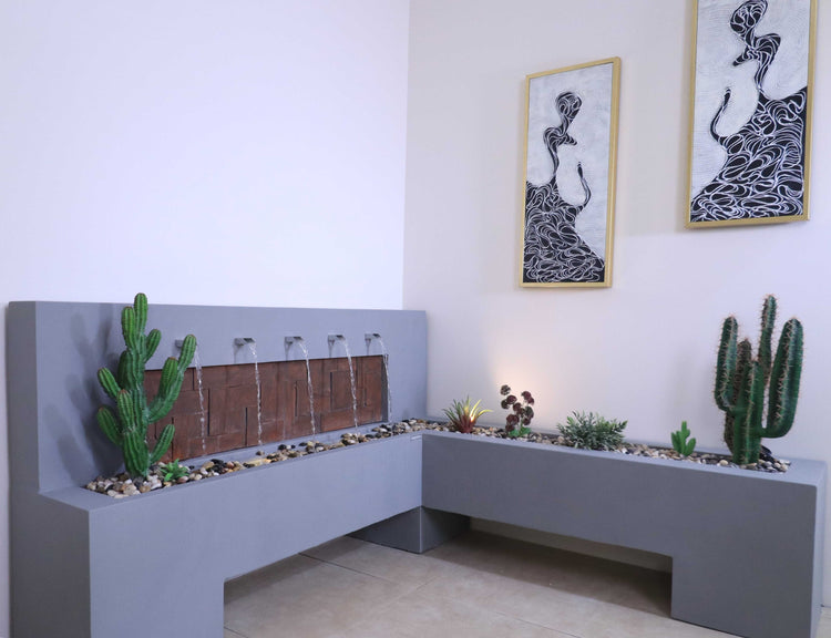 شلال بتصميم مميز مدمج مع كرسي أو حوض قابل للزراعة