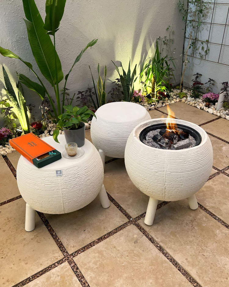 موقد نجد يجمع بين الأداء والجمال بتصميم ثلاثي القطع يمنح جلساتك الخارجية دفئًا عمليًا ولمسة فاخرة.